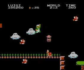 Uma parte interessante de Lost Levels é que agora era possível jogar com o Mario verde. Sim, era possível você escolher Luigi para enfrentar os desafios das fases perdidas e ele tinha um salto muito maior do que o do Mario, o que poderia te ajudar em muitas fases, mas em contrapartida ele escorregava muito mais, fazendo com que fosse menos preciso na hora de saltar do que o Mario.
